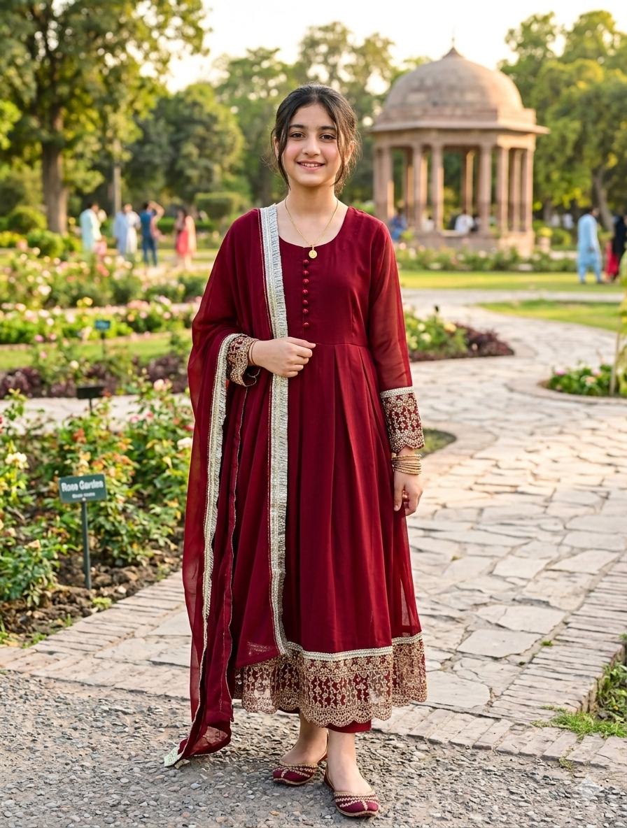 Artisanal Embroidery: Heavy “Zari” work on the borders and cuffs for a luxurious finish.