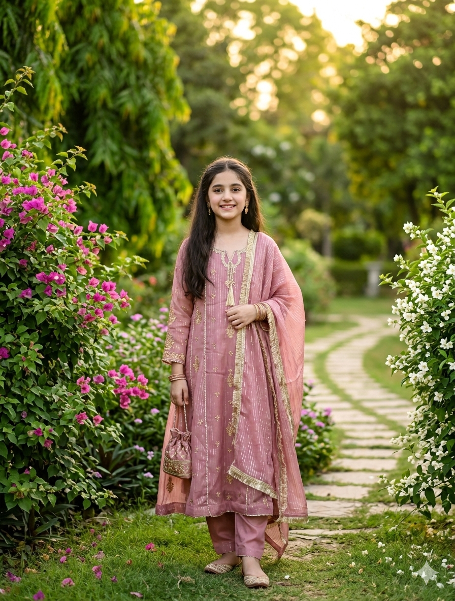 Intricate Details: Featuring a beautifully embroidered neckline with tassel accents and gold-work on the sleeves.