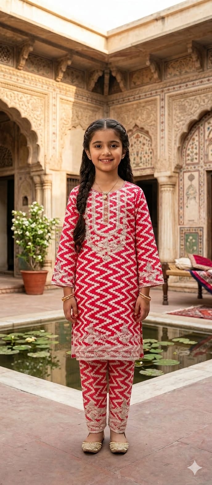 Elegant and comfortable, this girls’ suit is designed to bring out both style and grace. Made with soft, high-quality fabric, it ensures all-day comfort while giving a trendy and classy look. Perfect for casual wear, family gatherings, or festive occasions, this suit features a beautiful design with a flattering fit. A perfect choice to add charm and confidence to your little one’s wardrobe.