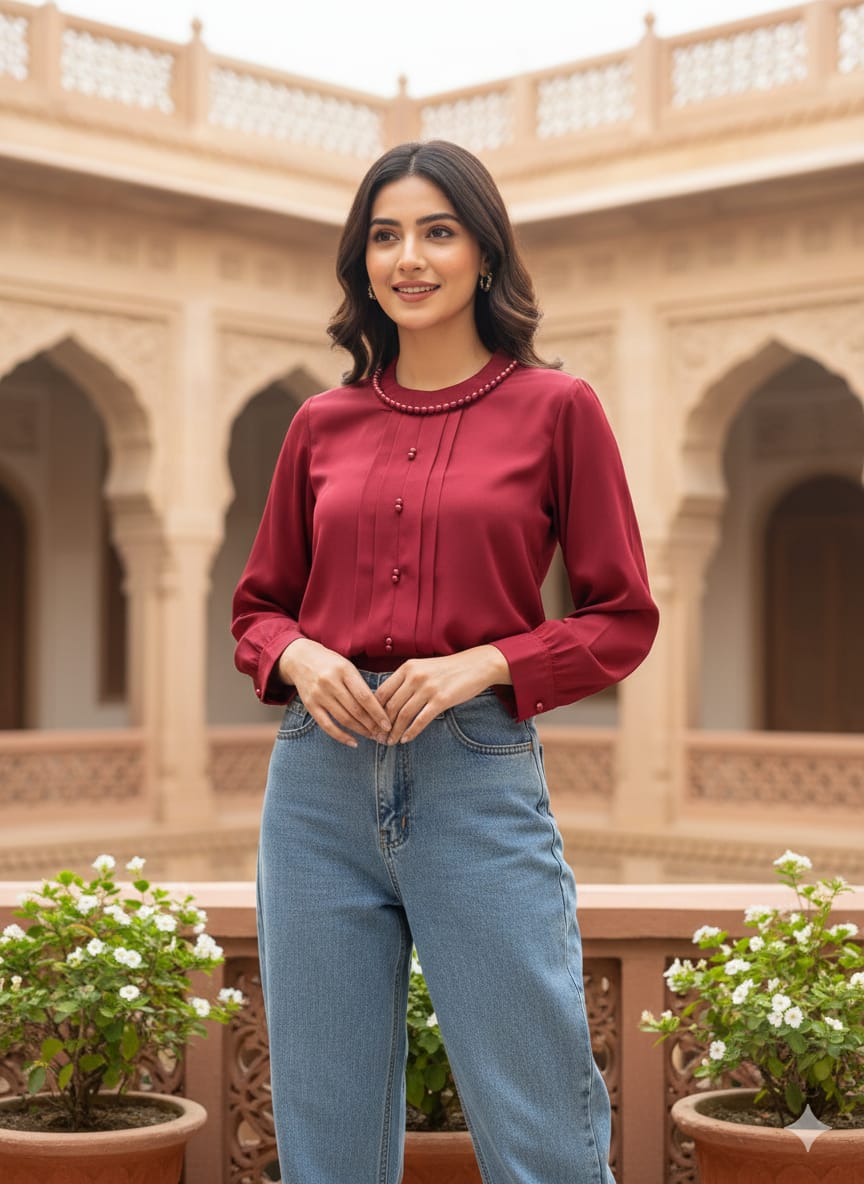Stylish georgette top shirt for girls, designed with a modern look and comfortable fit. Ideal for a trendy and graceful appearance.