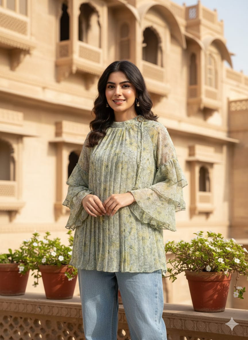 Add charm to your wardrobe with this beautiful georgette top. Soft, breathable, and perfect for all-day comfort.