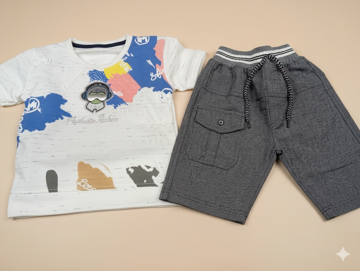 Style meets comfort in our new Graffiti Splash Set! 🎨 This duo features a bold, artistic tee and cargo-style shorts that are tough enough for the playground but cool enough for a party.